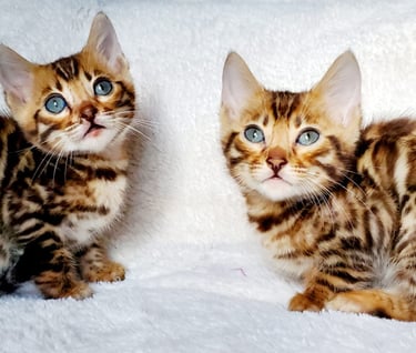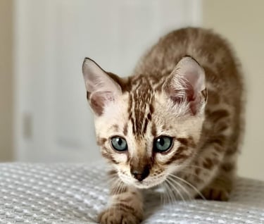 Discover our exceptional TICA registered Bengal kittens bred for their beauty, intelligence, and loving nature. Each kitten is raised with care and attention, ensuring they are well-socialized and ready to become a cherished member of your family.